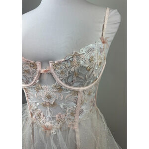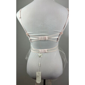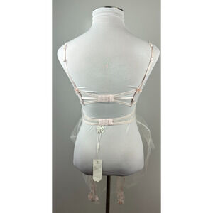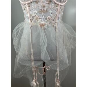 NWT For Love & Lemons Mae Teddy W/ Garters Babydoll Lingerie Pink Shimmer Med M