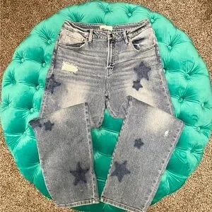 Elevate your style with these chic straight leg jeans, featuring a playful star design. Perfect for any casual outing.