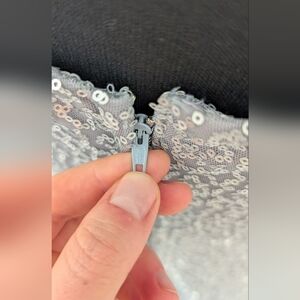 NWT Morilee Madeline Gardner Silver Sequin Gown Size 10