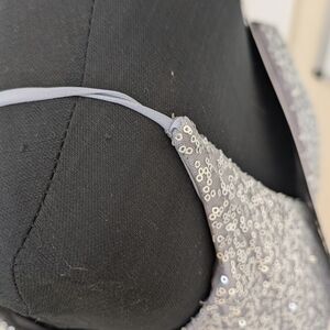 Shimmer in this elegant silver evening gown, perfect for any special occasion. The sleek design offers a flattering fit, making you stand out effortlessly.