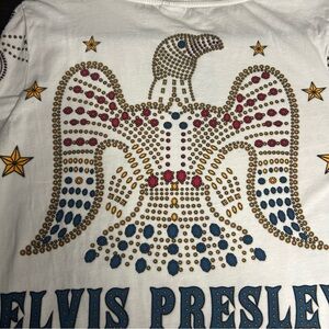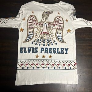 Embrace iconic style with this Elvis women's long sleeve tee. Featuring a striking design with colorful embellishments, it's perfect for fans seeking comfort and flair.