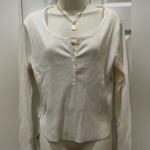 Women's Cream Long Sleeve Henley Top. New