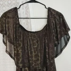 Step out in style with this elegant off-shoulder leopard print dress. Perfect for any occasion, this dress features a stunning brown and black pattern that adds a touch of sophistication to your wardrobe.