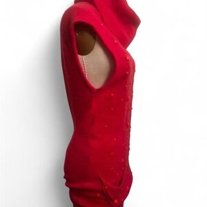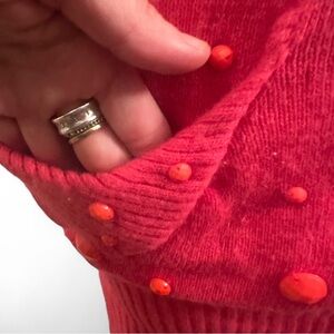 Vintage Chanel coral cashmere Cowl Neck Sweater dress stone embellishments