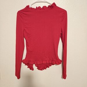 SHEIN Red Ruffle Trim Blouse with Bow Accents Size M