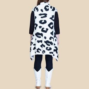 Stylish and cozy leopard print vest for women, perfect for layering. Features a chic black and white design.