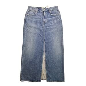 NWT AGOLDE Leif Low Slung Denim Maxi Skirt in Swing Blue Front Slit Size 26