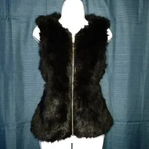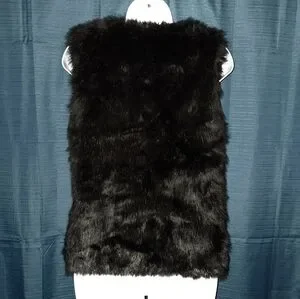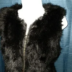 women's vest / size Small / very soft thick black fur exterior / black silky interior with a pocket on left side / super cute well elegant sleeveless jacket that you can dress up or down / see all pics & measurements for reference