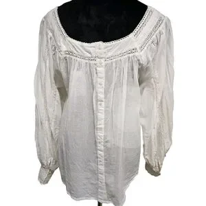 Elegant White Lace Trim Blouse-NWT- Size Medium