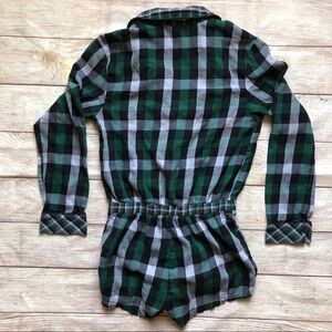 VS Plaid Sleep Romper. Size xs. Green and blue plaid. Button down in front.