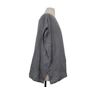 Eileen Fisher Organic Linen Round Neck Boxy Top in Moon Gray check pattern