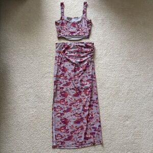 Stand out in this stunning set featured in a floral printed design with corset-inspired top and coordinating maxi skirt for the perfect done-in-one look no matter the occasion.