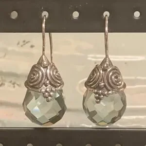Sajen Earrings Sterling Silver & Light Blue Aquamarine Briolette Drop Fishhooks