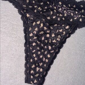 Victoria’s Secret Black Lace Thong Panty Gold Shimmer Leopard Print