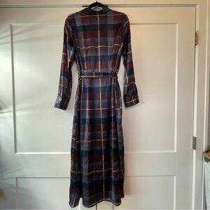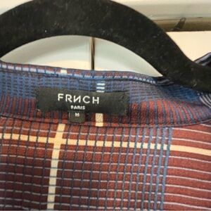 Frnch Paris brand “Adelphine” purple, blue, & white plaid button-up long sleeve maxi dress size medium, or equivalent of a size 6. Perfect for fall! Length from shoulder to hem is 51”. Good used condition. I’ve also added the brand’s sizing guide since this is a lesser known brand :)