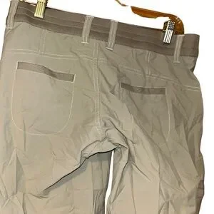 Women Kuhl light tan hiking cargo pants size 6 reg . Can be tied up at ankle . Smoke free home
