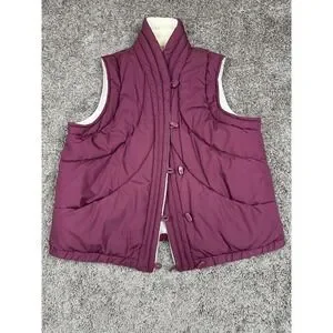 Vintage Puffer Vest Womens Large Quilted Button Front Sleeveless Winter 80s