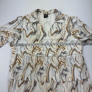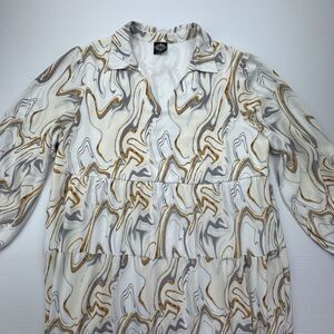 Calstyle Maxi Dress Geometric Gray White Gold Swirl Size XL Balloon Long Sleeve