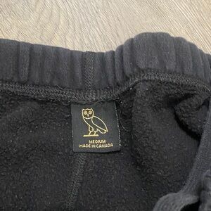 Classic black joggers by OVO. Features signature owl emblem. Elastic waistband with drawstring.
