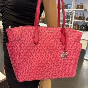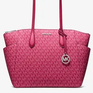 MICHAEL KORS Marilyn Md Signature Logo Shoulder Tote Bag Dark Raspberry NWT