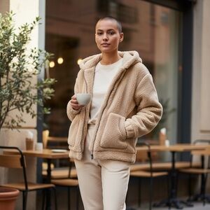 Stylish tan jacket by Elodie. Made from 100% polyester. Ideal for cool weather.