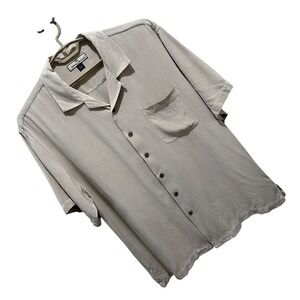 Tommy Bahama Silk Button Down Shirt Mens XL Tan Camp Collar Short Sleeve