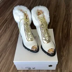 Step out in style with these elegant white and gold women's boots. Perfect for adding a touch of luxury to any outfit.