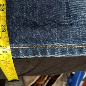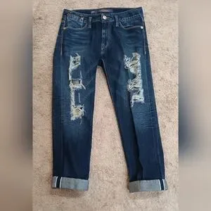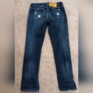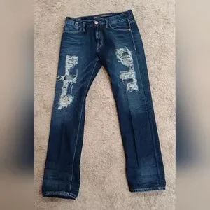 The dark wash, ripper details, and distressed accents make these jeans perfect for any festival or hippie-inspired outfit. The cotton blend fabric is easy to care for and features pockets, a zip and button closure, and versatile hem length to change the style of jeans. These jeans are a size 29 with a waist size of 32 inches and an inseam of 30 inches. 9.5 inch rise The mid-rise fit and relaxed style make them ideal for any occasion, from preppy to nautical.