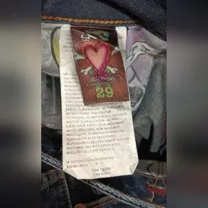 These jeans are a must-have for any fashion-forward woman who loves to explore different styles. The Ed Hardy logo accents the jeans perfectly, adding a touch of tattoos, skulls, and love to the overall design. Whether you're going for a cowboy or city-inspired look, these jeans are the perfect addition to your wardrobe. Minimal signs of wear, if any.