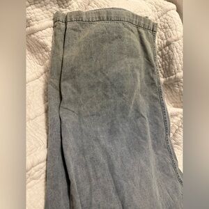 The dip dye on the bottom of the actual pants is not nearly as yellow as the stock photos portray - can barely see the change in color. Dee attached photo of bottom of pants
