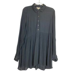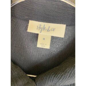 Style & Co Black Long-Sleeve Button Up Tunic Top Medium Boho Western Prairie Y2K