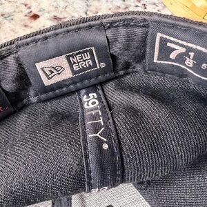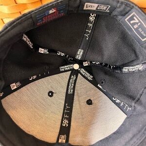 Preowned Philadelphia Phillies black on black New Era 59fifty fitted hat size 7 1/8. There is a small blemish on the underside of the brim. See photo.