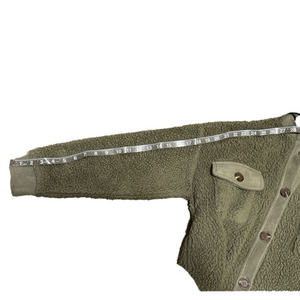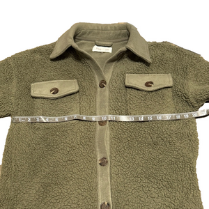Pre-loved, Pink Rose Army Green Faux Fur Sherpa Button Jacket Women Size XS.