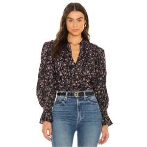 Free People Meant to Be Black Purple Floral Puff Sleeve Smocked Cotton Blouse