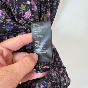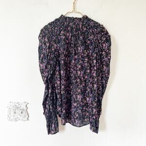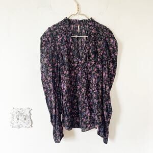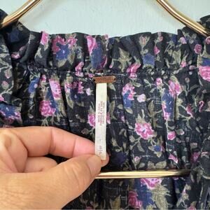 Free People Meant to Be Black Purple Floral Puff Sleeve Smocked Cotton Blouse S