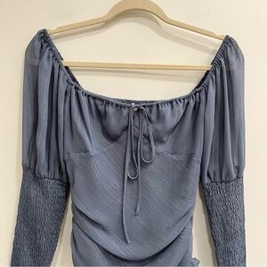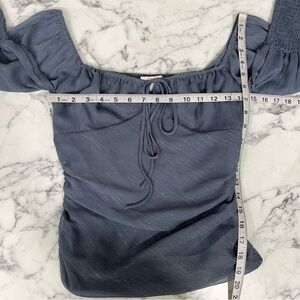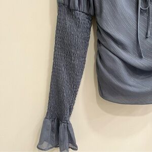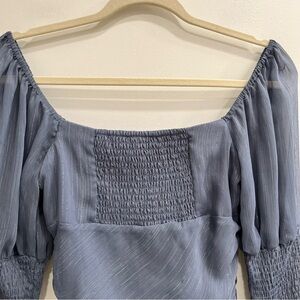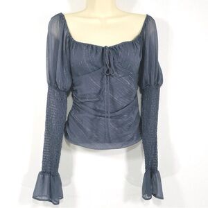 Wayf Chiffon Top Puffed Sleeve Blue/Gray Silver Metallic Fairy Whimsy Goth Smocked Milkmaid Size 6