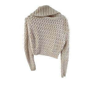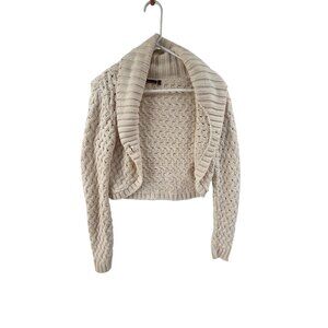 525 America Women's Cardigan Sweater Fisherman Knit Open Front Crop Cream Size M