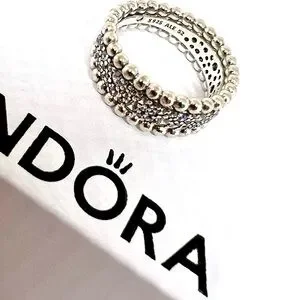 This listing is for NEW in original box - Pandora Beaded Pave ring in Sterling Silver with Clear Cubic Zirconia.
