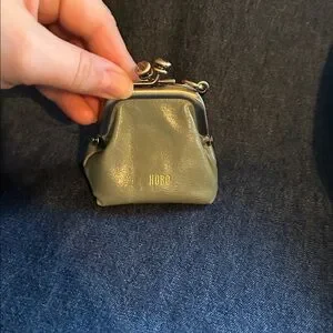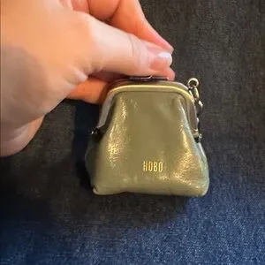 Like new! Super cute green color coin purse with clip for bag or keys. Tried to get several different photos in different light to show the lighter sage green color.See details below from HOBO