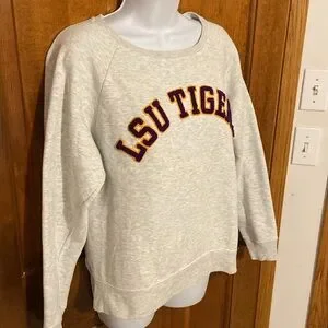 Pressbox LSU Tigers Comfy Light Gray Vintage Wash Sweatshirt Size Medium