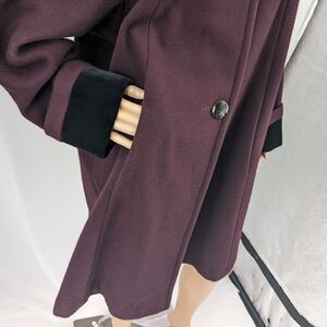 Vintage 1970s Jofeld Wool Coat Plum Swing Velvet Trim Winter Plus Size 1X