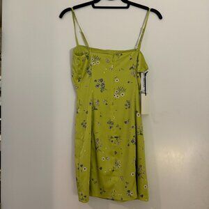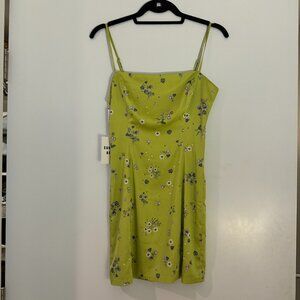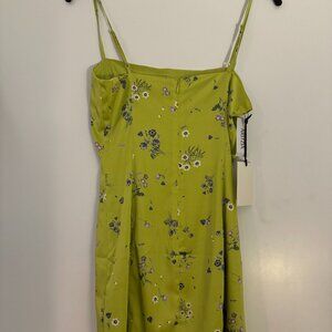 Sunday Best bright green spaghetti strap mini satin dress with flowers from Aritzia. Size 4.