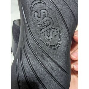 SAS Women's Gray & Black Adjustable Leather Strap Comfort Flat Sandal Size 9