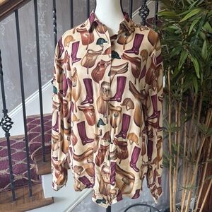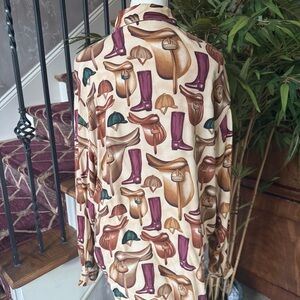 EAGLE EYE ladies, Equestrian, English longsleeve, blouse, saddle, and bit design very good condition super soft, long sleeve button-down