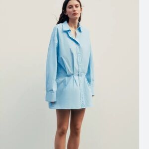 Zara box pleat shirt dress in blue button up relaxed oversized Size Medium