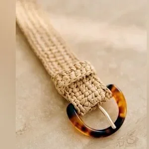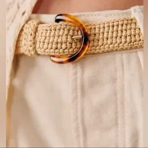 Sezane Tortoise Buckle Raffia Belt. Beige. 80CM. Lenny