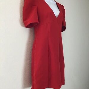 Forever 21 Red Puff Sleeve Mini Dress Short Sleeve V-Neck Party Dress Size Med
