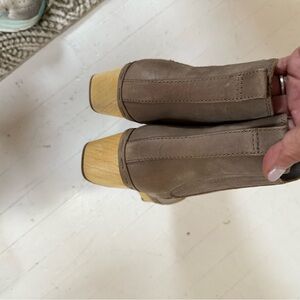 These Frye and Co Clog Booties have only been worn in house a few times to try and break in! They’re in excellent condition. They have stretch at ankle for comfort. Wood heel. Size 8.5.