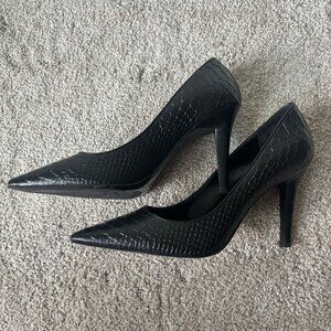 Lauren Ralph Lauren Black Snake Skin Embossed Pump Heel Pointed Toe Classy