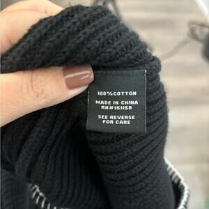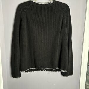 525 America Black Cardigan Sweater With White Trim Fabric Covered Snaps Size L